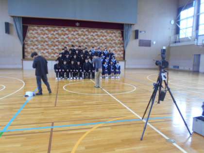 雨模様のため、体育館での撮影となりました。