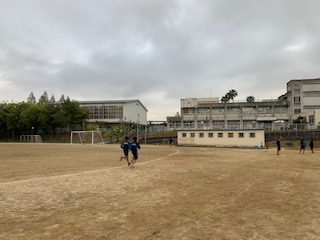 グラウンドでは陸上部とテニス部が活動しています。日中雨がパラついたこともあり、ひんやりとした気温です。