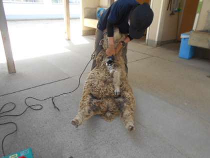 今日の午後から、ハーベストの丘のスタッフの方に来ていただいて、羊の毛刈りを行いました。