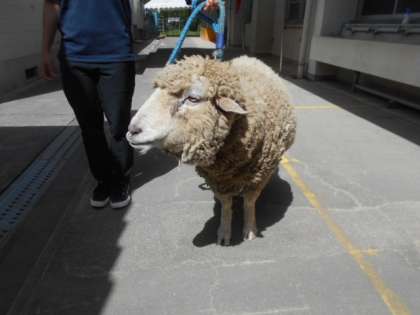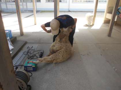 スカイはおとなしい性分なので、毛刈りの時もおとなしくしているのですが、連れて行くときには少し手こずらせました。