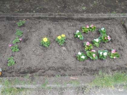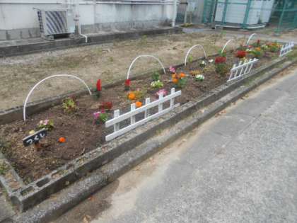 写真はつくし学級と1年生の花壇です。レイアウトに工夫が感じられます。