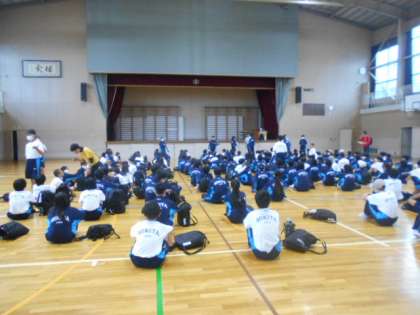 雨上がりの中、1・2年生は校外学習へ出かけます。