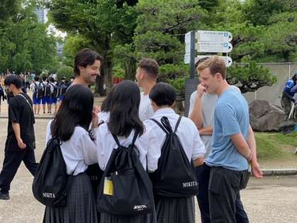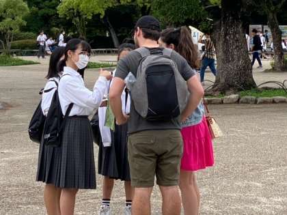外国の方にインタビューするミッションに取り組んでいます。みなさん勇気を出して、積極的に声をかけているようですね。