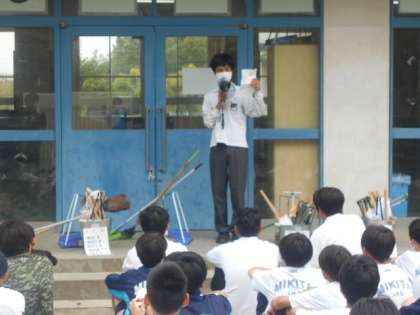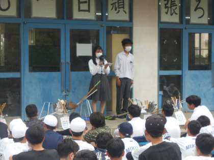 生徒会役員からのあいさつと、用具や分担についての説明がありました。