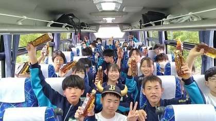 各クラスでの退館式。2日目もお茶を配布してバス移動です。