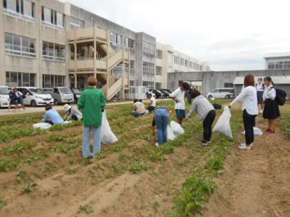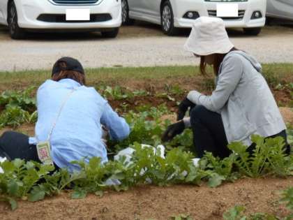 PTA行事委員会のみなさんが大根の間引きに来てくださいました。