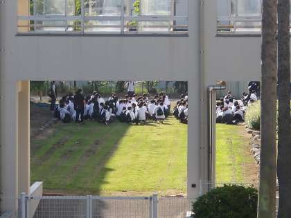 2年生はまもなくバスに乗り込み、校外学習に出発します。
