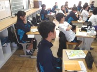 元気よく授業に取り組んでいます。 ※写真上から1-1(英語)・1-2(社会)・1-3(数学)