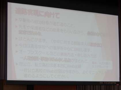 お配りした資料等をご参照ください。また随時発行しております進路通信「GO FOR IT!」にも、必要な情報を掲載しておりますので是非ご覧ください。