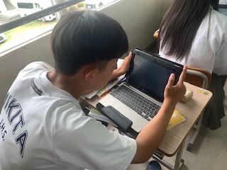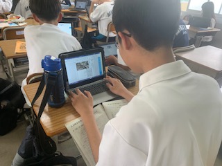 6時間目、持ってきたしおりや記憶をもとに、新聞作りをしています。インターネットから画像を取り入れたりして、各自工夫を凝らしています。