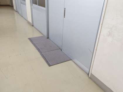 子どもたちがうっかりスリッパで入らないように、入口にマットを敷いて、ワンクッションおいてもらえるようにしています。