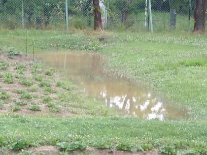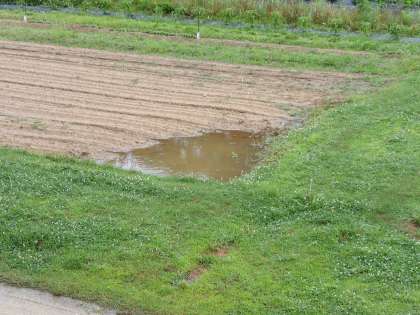 朝からの大雨でまた水たまりが…。