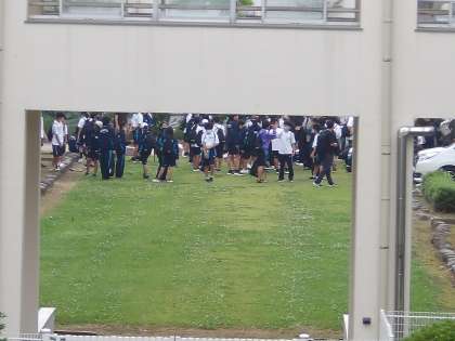 8:40、中庭集合です。 まもなくバスに乗り込み出発です。