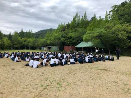 退所式の様子です。これからバスに乗って学校へ戻ります。