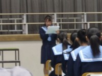 本校の学校教育目標は「学び愛 支え愛」、「一に挨拶、二に笑顔、三四に夢と目標、五に元気」です。