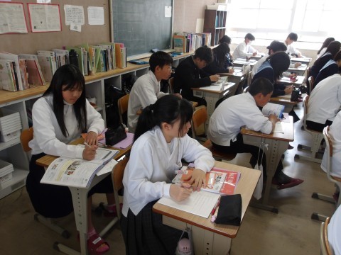 学年末テスト二日目。英語のテストに取り組んでいます。