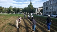 先日PTA実行委員の皆様で農場に大根の苗を植えました。今日は大根の苗に追肥を行い...