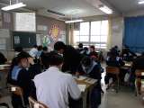 本校の学校教育目標は「学び愛 支え愛」、「一に挨拶、二に笑顔、三四に夢と目標、五に元気」です。