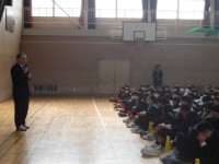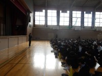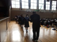 本校の学校教育目標は「学び愛 支え愛」、「一に挨拶、二に笑顔、三四に夢と目標、五に元気」です。
