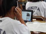 今日は2-3・2-1でオンライン英会話を行います。 写真は3組の様子です。子...