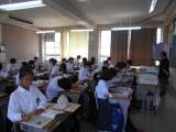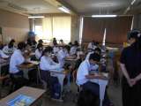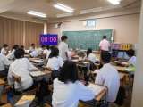 本校の学校教育目標は「学び愛 支え愛」、「一に挨拶、二に笑顔、三四に夢と目標、五に元気」です。