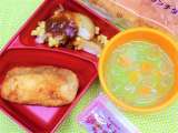 【献立】 コッペパン サーモンフライ プーティン ピースープ メープルシロップ ...