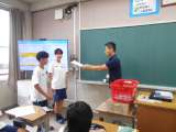 本校の学校教育目標は「学び愛 支え愛」、「一に挨拶、二に笑顔、三四に夢と目標、五に元気」です。
