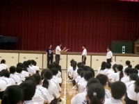 夏休みに入る直前の学年集会ということで、学級代表による1学期の振り返り・学年の先生からのお話・各クラスのMVP発表などを行いました。