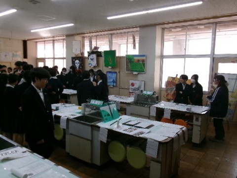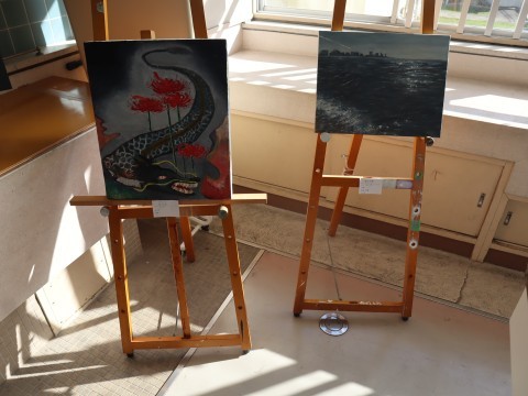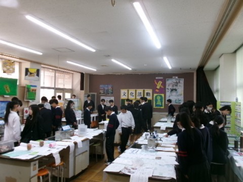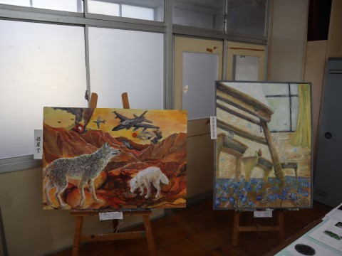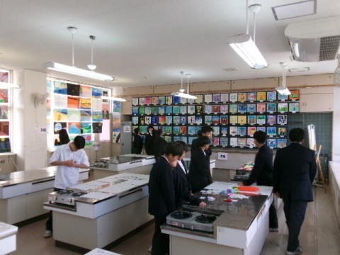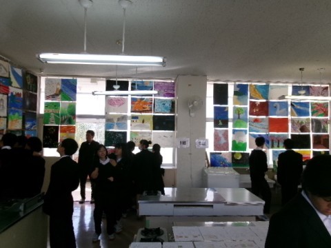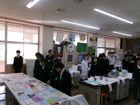 学校 +4 展示見学の様子です。 教科や部活動で制作したみなさん一人ひとりの作品、どれも素晴らしい出来となっています。 作品を鑑賞し、感じ・考えることで、みなさんの心はさらに豊かになりますね。