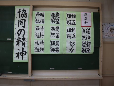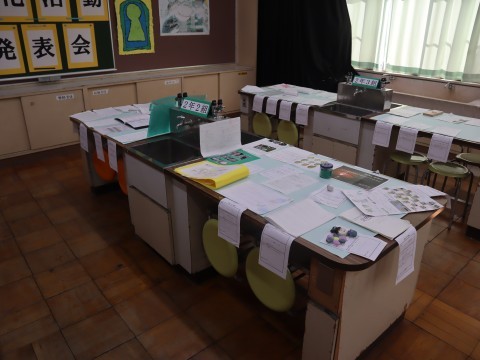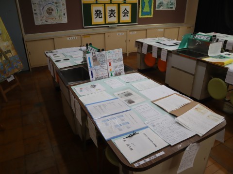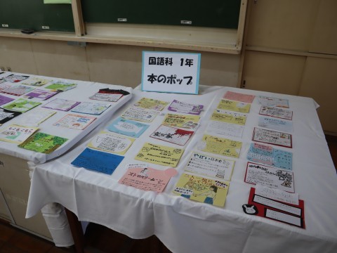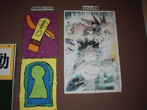 〇1年生国語科・・・おすすめの本のポップ 〇国語科・・・夏休みの宿題など 〇家庭科・・・1年生「先生に向けた献立」 2年生「絵合わせカード」 3年生「基礎縫い」 〇美術科・・・1年生「絵文字」 2年生「風景画」 3年生「自画像」 〇理科・・・夏休みの自由研究 〇なかよし学級・・・モザイク画 〇堺支援学校・・・「埴輪」・「古墳」