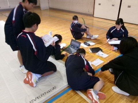 1年 +3 1年生の授業の様子です。 1組「保健体育」、2組「数学」、3組「英語」の様子です。 保健体育は、体育館でマット運動を行いました。自分が行う技を決めて練習したり、動画を見たりしながらイメージを膨らませました。 数学は、コンパス、定規を使った問題・プリントに取り組みました。コンパスをしっかり使いこなせるようにしましょう。 英語は、ペアワークを行い、スピーキングシートを活用しながら、お互いに会話しました。