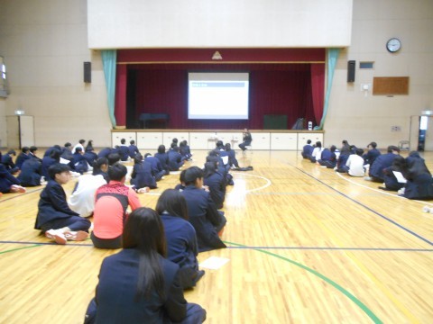 南区の自治推進課の方を講師にお招きし、今までに発生した地震による災害をもとに、実際に災害が起こった時にどのように行動するのがよいかを考えました。