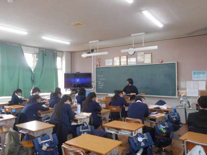3年生の英語の授業では、放送で流れてくる英語を聞き取りながら、問題に答えていきました。