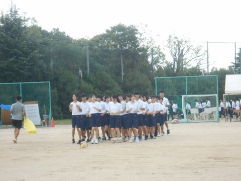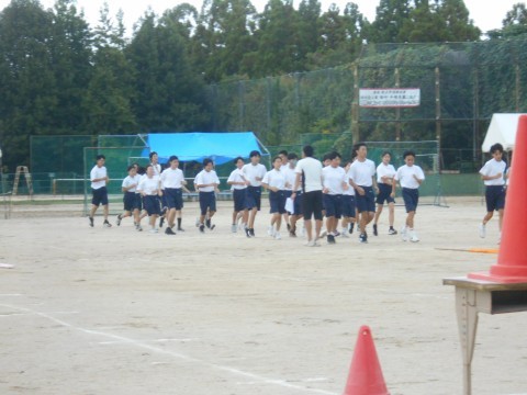 本日1限より、明日開催する体育大会の予行練習を行いました。
