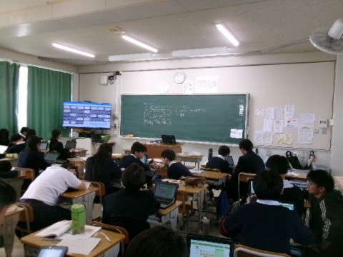 写真は順に、1組理科、2組英語、3組家庭の様子です。