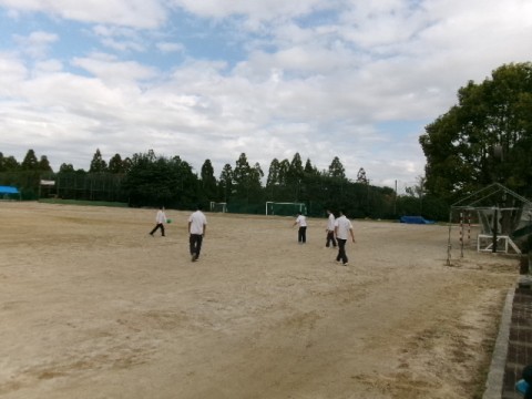 3年生はサッカー、2年生はバレーボールで遊んでいました。