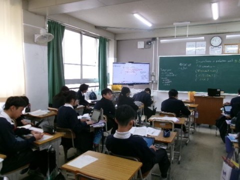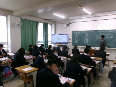写真は、1組「英語」、2組「保健体育」、3組「社会」の様子です。