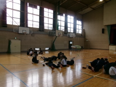 今日の授業では、マット運動の実技テストとまとめ・振り返りを行いました。