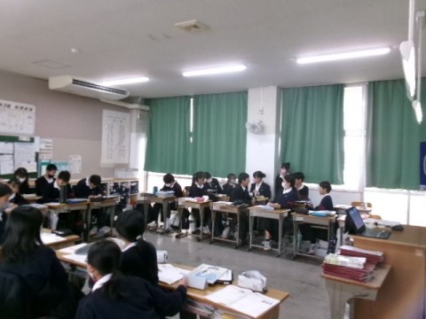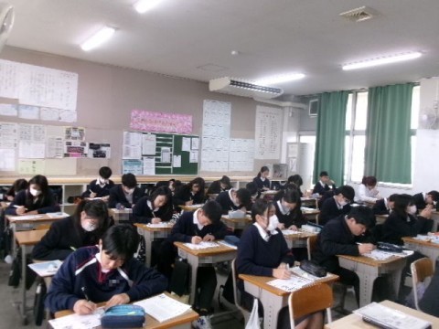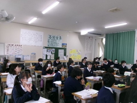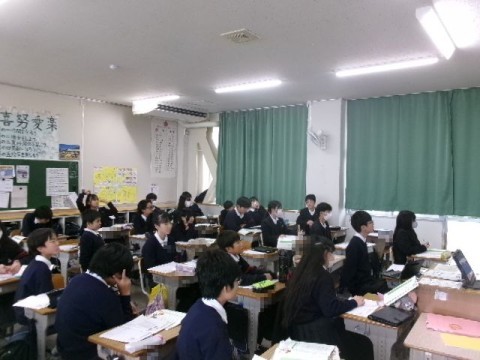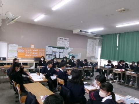 写真は、1組「動物の命ー私たちにできること」、2組「公平な社会ってなんだろう?」、3組「席を譲ったけれど」という教科書などの各教材に取り組んでいる様子です。