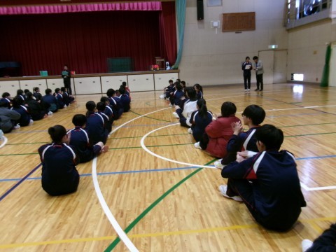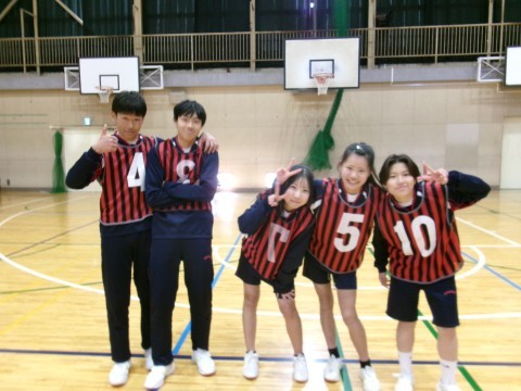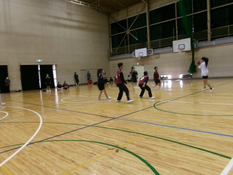 始めは運動場にてムカデ競争と障害物リレーを行い、その後、体育館に場所を移し、バスケットボールを行いました。