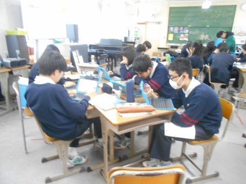 1組は「技術」、2組は「家庭」、3組は「音楽」の授業を行いました。