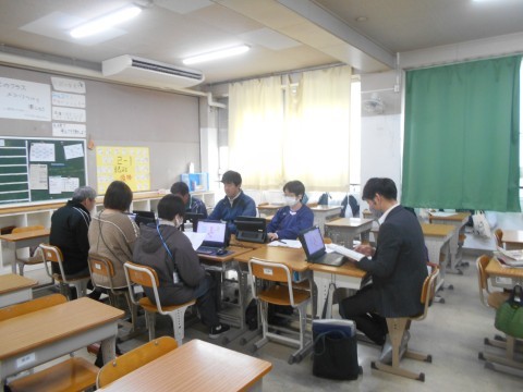 職員は授業後、各グループに分かれて検討会を行いました。