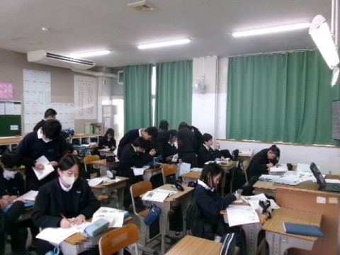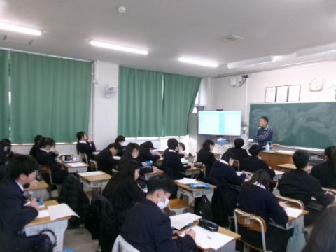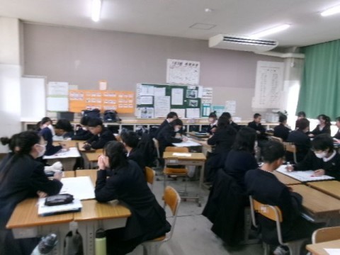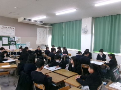 先生の話を聞きしっかりと考えている様子と、グループワークなどを行い自分の意見・考えと友だちの意見・考えを共有している様子です。