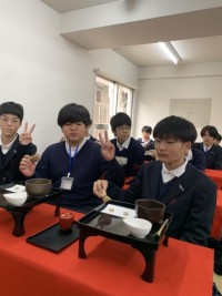 お点前体験、スタートしています。真剣な眼差しで、講師さんのお話しを聞いています。