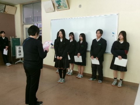 最後に、教頭先生より、 ①1・2年生、先日実施した校外学習お疲れ様でした。3年生、私学受験は終わりましたが公立高校入試を控えています。みんなで最後まで協力しあう、応援しあう、良い雰囲気を作ってください。 ②現在行われている冬季オリンピックより、日本選手の活躍、練習の成果が出ている、自分を信じることの大切さ を話しました。