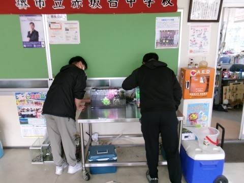 職員室前の水槽が、リニューアルしました。生き物係の先生による力作です。