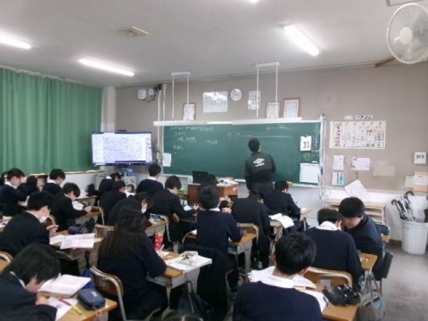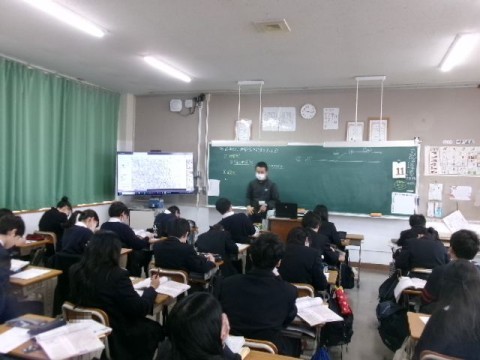写真は、1組「国語」、2組「社会N」、3組「理科」の様子です。