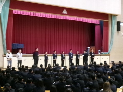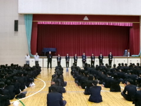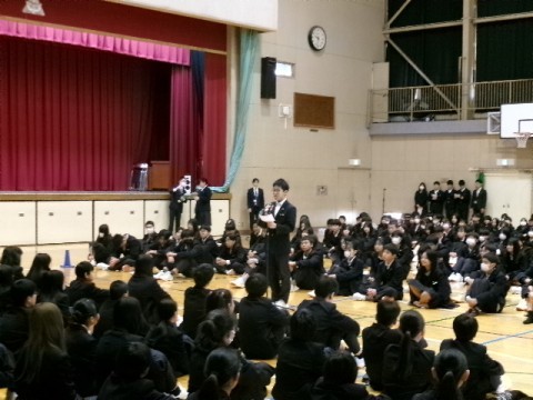 続いて、新入生を迎え、2・3年生との対面式・生徒会入会式を行いました。