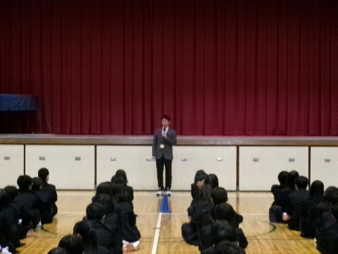 次に、生徒指導主事より、学校群の共通した取り組みや、中学校で大切にしてほしいことなど話をしました。