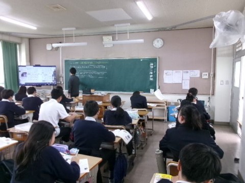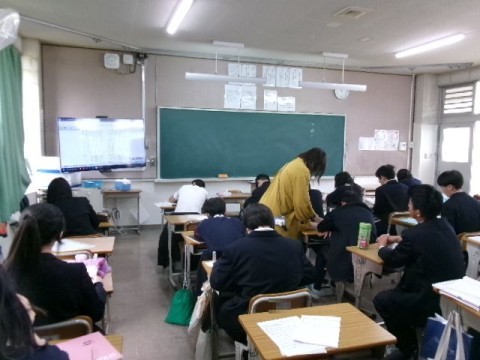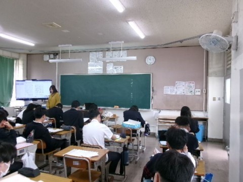 写真は、1組「英語」、2組「国語」、3組「社会」の様子です。